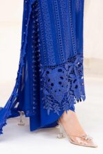 Experience the finesse of Reywaaj’s M.B Blue Chiffon. Featuring a long-length shirt with intricate Chikankari work, a hand-worked neckline, and stunning 3D floral detailing on the sleeves. A pure chiffon masterpiece for the woman who loves detail.