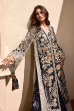 Redefine luxury with ‘Reywaaj’ in our Black Steela 4-Piece Gown. Yeh ek nihayat hi elegant aur modern design hai jo formal events ke liye perfect hai. Is long-length gown ko premium Organza par tyar kiya gaya hai, jis par nadeed Handwork (Ada work) ki detailing hai. Is dress ki sab se bari khoobsurti iska Printed Inner hai, jo sheer organza ke neechay se ek bohat hi unique aur stylish look deta hai.